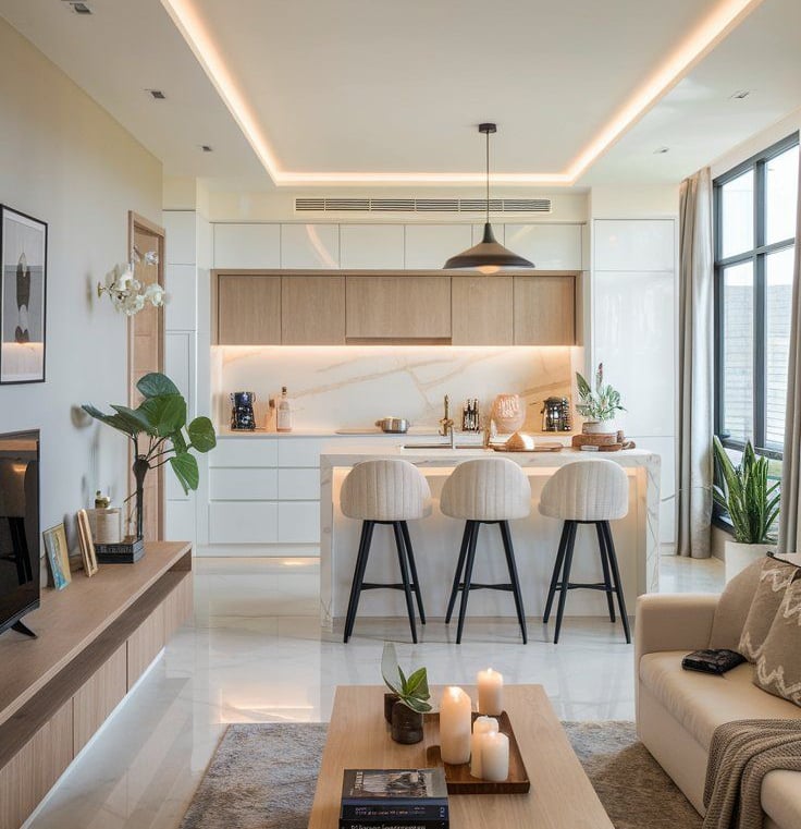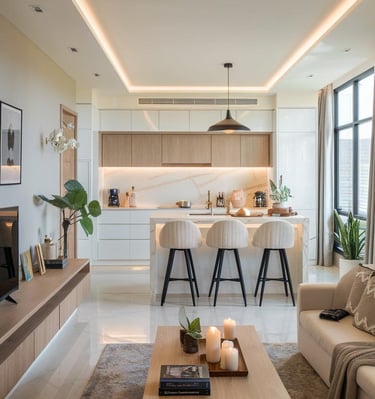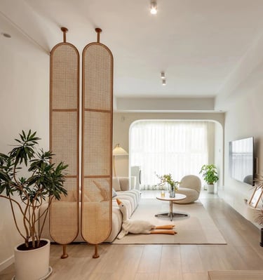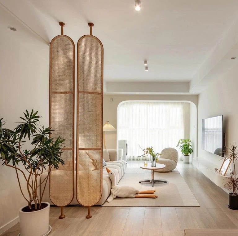 A serene living room with clean lines and soft colors.
